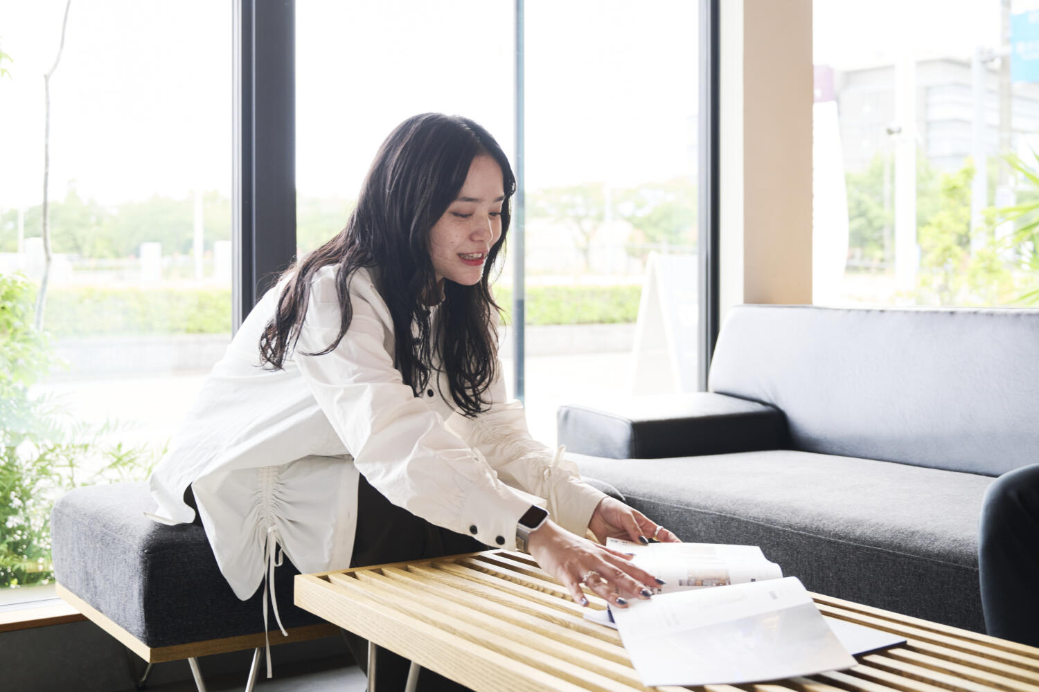 また、仕事を通じて自己成長を続けることも大切にしています。現在は、より豊かな色彩提案ができるよう色彩検定1級の取得に挑戦しているほか、将来お客様とのコミュニケーションの幅を広げるために英語や韓国語の勉強も始めました。