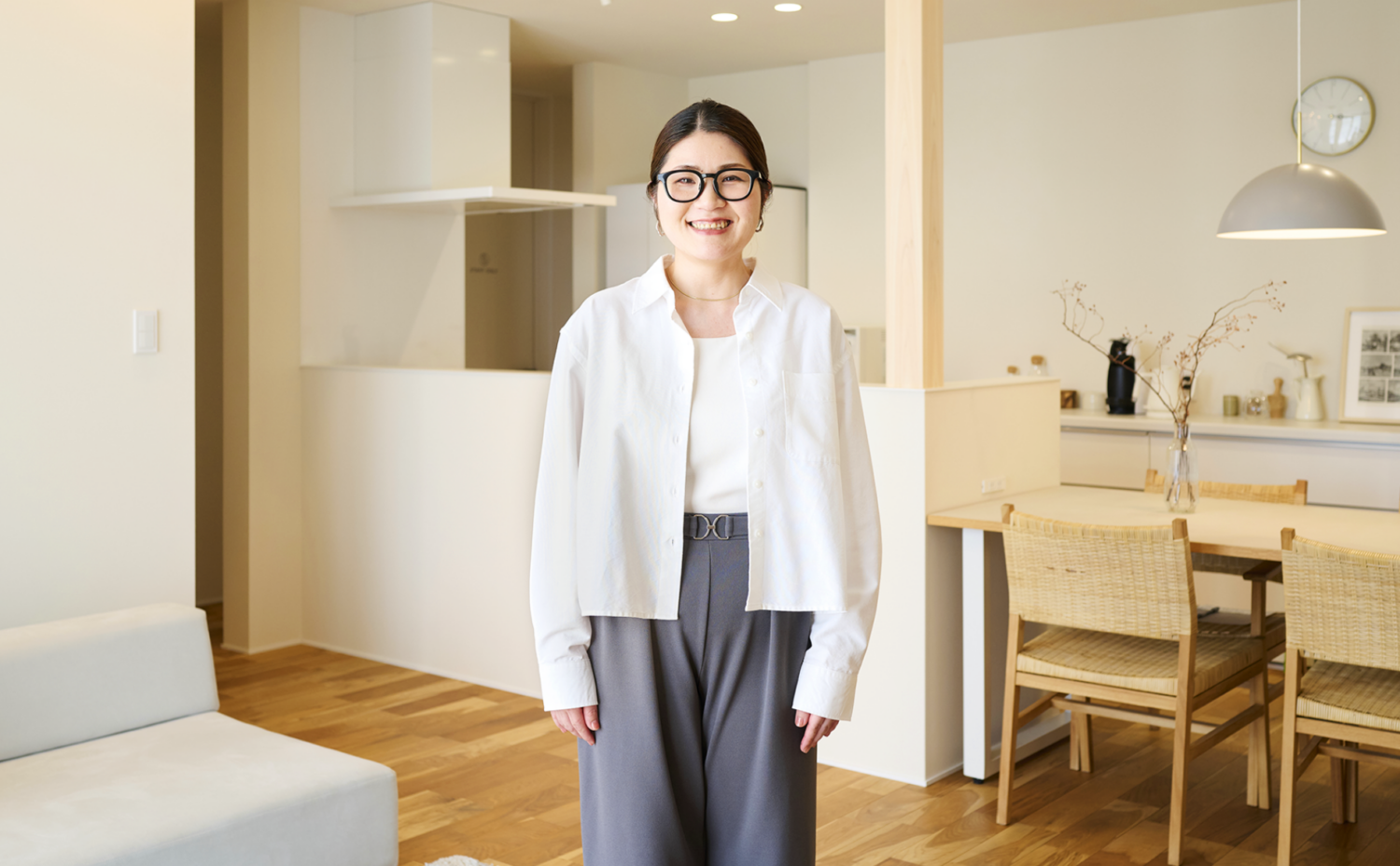 前職では14年間、金融機関の窓口業務に携わっていました。やりがいのある仕事でしたが、子どもの小学校入学を機に、より柔軟な働き方ができる環境を求めて転職を決意しました。地元企業で探していたところ、友人がハウスクラフトでお家を建てたことをきっかけにこの会社を知りました。